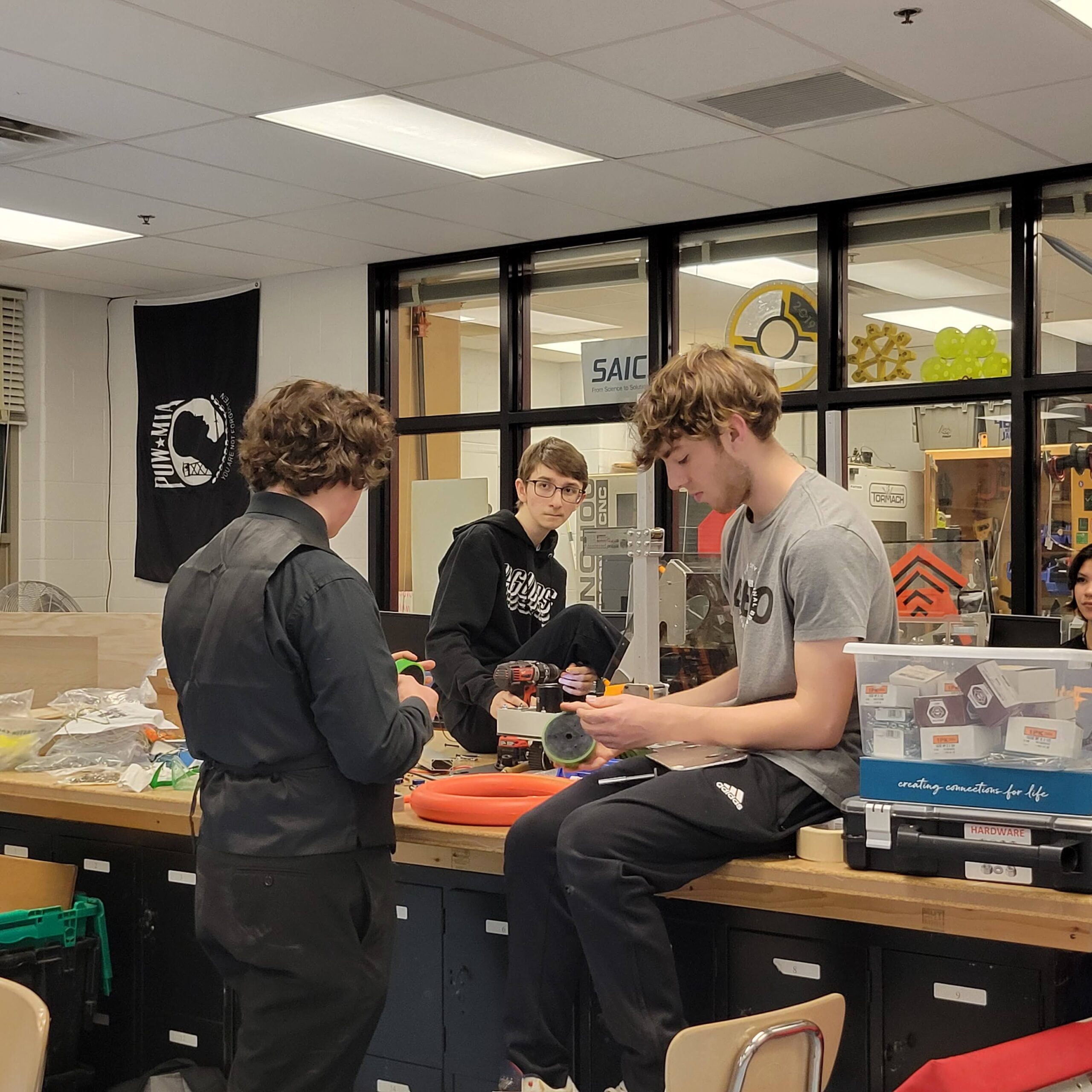 Our team of students and mentors focus on working together as a group to bring together our skills, talents, and ideas! We are always striving to move forward!